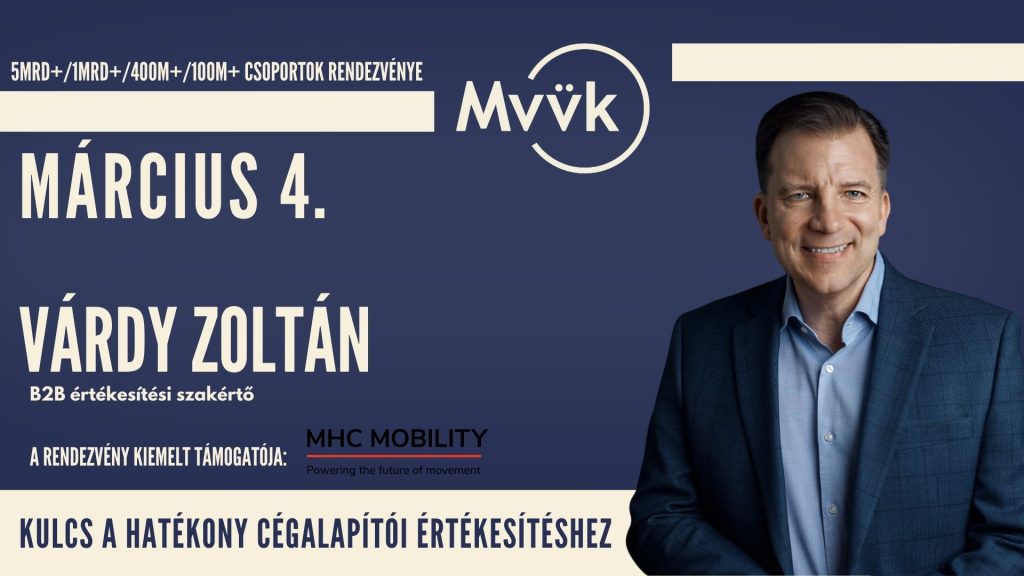vagy 10–100 fős csapatot vezet, és akár 1 milliárdos árbevétel mellett is új szintre emelné az üzletszerzést. A könyv – és az erre épülő előadás – azonnal alkalmazható keretrendszert ad a nagy értékű B2B ügyletek zárásához, az értékesítési hatékonyság növeléséhez és a tulajdonosi szemlélet megerősítéséhez. Zoltán inspiráló ügyféltörténetei és gyakorlati eszközei különösen relevánsak az MVÜK-közösség számára, ahol a döntéshozók első kézből felelnek a növekedésért.