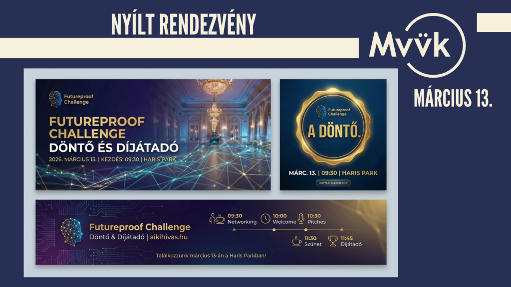 A Futureproof Challenge (www.aikihivas.hu) egy több hónapon át tartó, nyílt AI-innovációs program, amelyben csapatok valós üzleti problémákra fejlesztenek mesterséges intelligencia alapú megoldásokat. A döntőben a legígéretesebb projektek mutatkoznak be szakmai zsűri előtt – itt derül ki, mely ötletek bizonyulnak valóban jövőállónak.