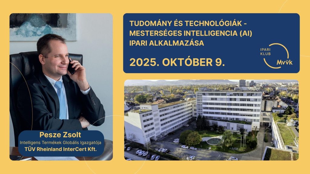 Az MVÜK Ipari Klub „Tudomány és technológiák“rendezvénysorozatának következő állomására a TÜV Rheinland InterCert Kft. biztosít helyszínt. A program központi témája a mesterséges intelligencia ipari alkalmazásainak gyakorlati aspektusai és az ezekkel járó kockázatok.