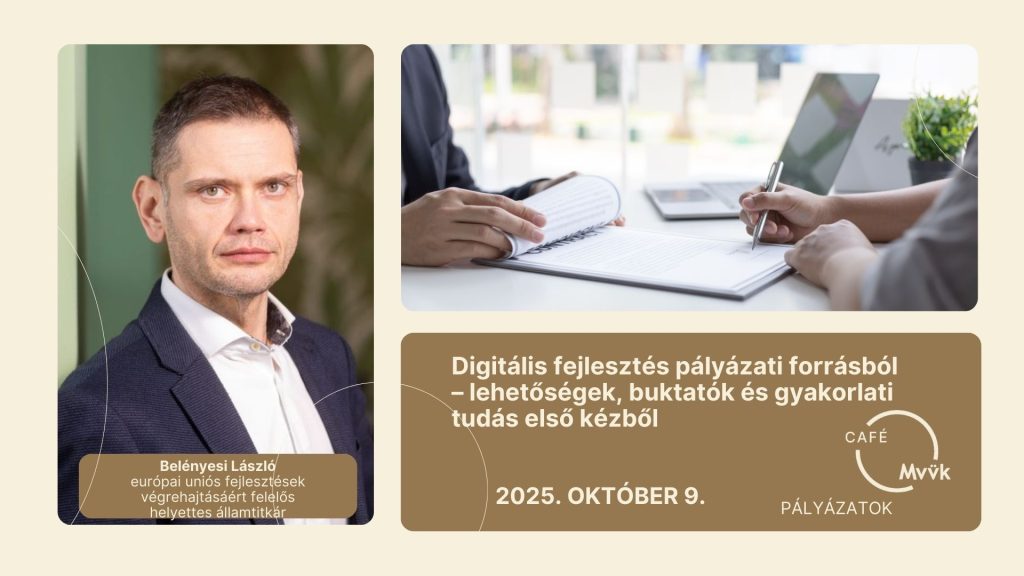 Digitális fejlesztést tervezel vállalkozásodban? Érdekel, milyen aktuális pályázati lehetőségek érhetők el, és hogyan kerülheted el a felesleges hiánypótlásokat, elutasításokat? Café eseményünk vendége Belényesi László, az Energiaügyi Minisztérium helyettes államtitkára, aki közvetlenül osztja meg a legfrissebb információkat az európai uniós forrásokkal kapcsolatban. Átbeszéljük a támogatási célokat, feltételeket, az elérhető összegeket és a megvalósítás során leggyakrabban előforduló hibákat is.