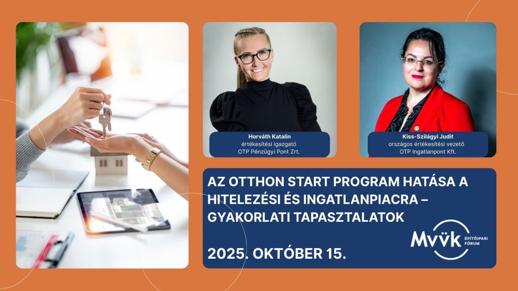 Az Építőipari Fórum következő eseményén két oldalról közelítjük meg a hazai piacot átalakító Otthon Start Programot. Egyik előadásunk a banki és ügyféloldali hitelezési gyakorlat változásait mutatja be, míg a másik az ingatlanpiaci reakciókat elemzi. A két perspektíva együtt átfogó képet ad arról, hogyan alakítja a támogatott hitel a mindennapi tranzakciókat és a piaci folyamatokat.